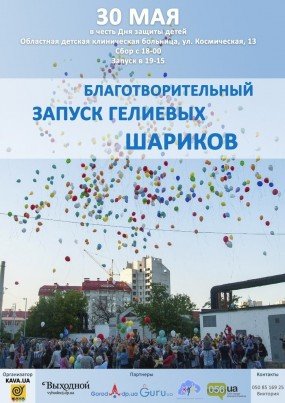 В преддверии Дня Защиты Детей - благотворительная акция - запуск гелиевых шаров в небо и сбор средств для покупки необходимых препаратов на лечение онкобольных детей.