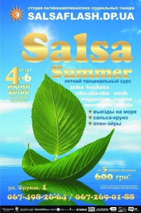- выезды на море (июнь – Zouk-Fest в Одессе, июль – Salsa-Fest в Одессе, август – Salsa-Fest в Ялте)