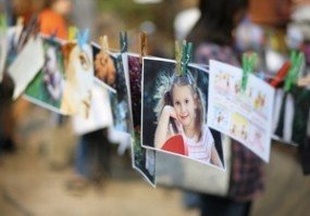 Это уличная выставка, на которой фотографии размещаются на бельевых веревках с помощью прищепок.