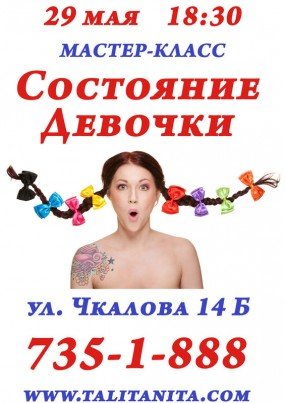 Мастер-класс для женщин. Состояние Девочки – самое важное особенно для незамужних… и не только… (почему? - секрет откроем вам на занятии).