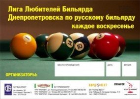 Турниры по русскому бильярду с гандикапом для всех желающих проводятся с января по декабрь 2013 года в пяти бильярдных клубах Днепропетровска. 16 июня на очереди БК «Норд Вест». Игра: Московская Пирамида.