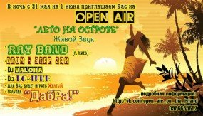 Open Air. Встречаем Лето. Хотите круто и незабываемо встретить лето? Это именно то, что вы ищите! Open Air на острове! Только пляж солнце, красивые девочки в купальниках и самое главное - Музыка!