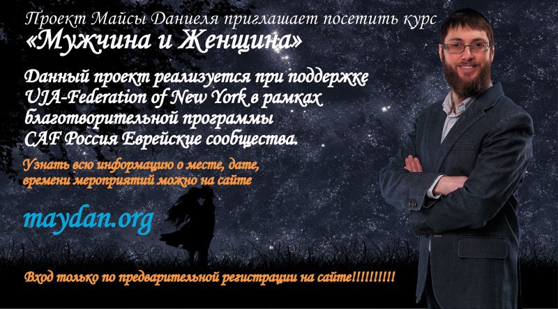 Пройдя курс «Мужчины и Женщины», вы приобретете основополагающие знания, описанные в Торе Хасидизма и Каббале, об успешном создании самого важного проекта вашей жизни - вашей семьи.