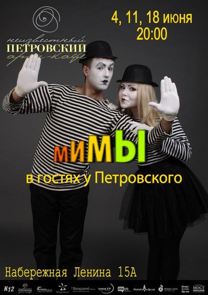 Внимание! В окрестностях кафе могут и будут замечены мимы! Они безобидны, просим посетителей руками их не трогать, и не кормить (они сыты).