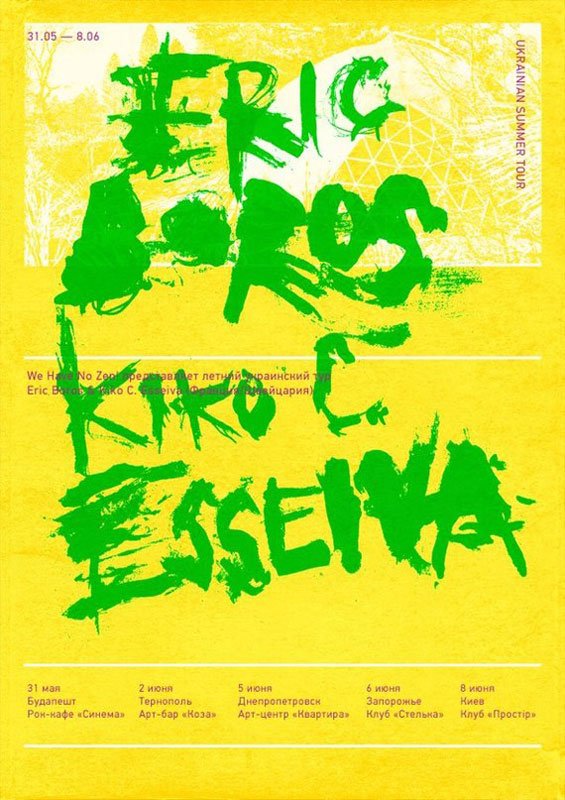 We Have No Zen! представляет летний украинский тур Eric Boros & Kiko C. Esseiva (Франция/Швейцария). Жанровые границы смяты внезапностью, с которой этот тур вдруг самоорганизовался и отправил музыкантов за билетами в солнечную Украину.