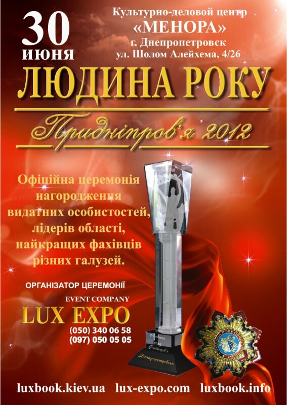 Организатор церемонии награждения «Людина року Придніпров’я-2012»: компания Lux Expo и ООО "РА "Оkey".