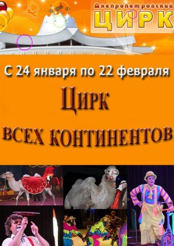 Днепропетровский цирк приготовил для горожан и гостей города новую захватывающую программу «Цирк всех континентов». Здесь собраны все ведущие жанры циркового искусства, огромное разнообразие животных в манеже, талантливые акробаты, дрессировщики, жонглеры и гимнасты.В программе: