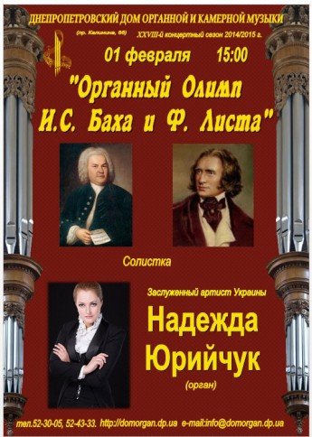 Солистка - заслуженный артист Украины Надежда Юрийчук (орган).