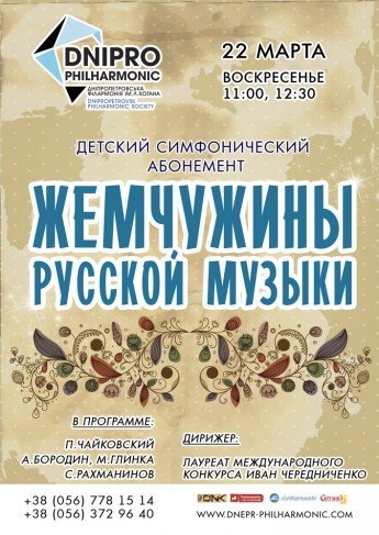 П.Чайковский - Симфония №4 фа минор, ор.36 (4 часть), А.Бородин - Половецкие пляски из оперы "Князь Игорь", М.Глинка - Увертюра к опере "Руслан и Людмила", С.Рахманинов - Симфония №2 ми минор, ор.27 (3 часть)
