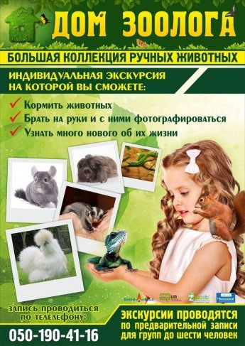 Побывав в гостях в «Доме зоолога», Вы откроете для себя новый, интересный хрупкий мир удивительных животных, полный тайн и загадок и открытий, который оставит неизгладимое приятное впечатление в Вашей памяти. Мы гарантируем, что Вам захочется снова и снова побывать у нас и пообщаться с животными.