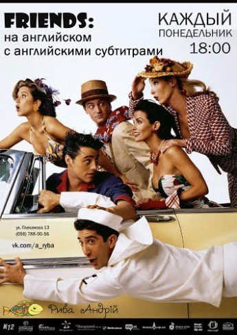 Каждый понедельник вас ждут две непревзойденные серии "Друзей" на английском с английскими субтитрами.