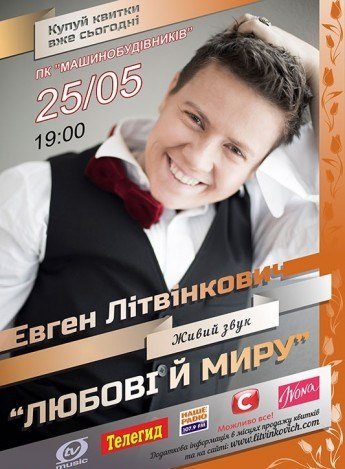Евгений Литвинкович - белорусский автор и исполнитель. Также популярен на Украине. Финалист шоу «Україна має талант 4» в 2012 году и супер-финалист шоу «Х-фактор 3» в начале 2013 года.