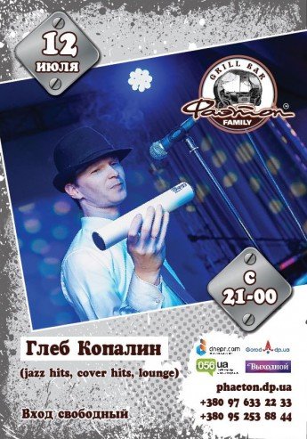 Гриль-бар «Фаэтон» с открытыми вратами приглашает Вас на вечер артистичного и выразительного классического джаза в исполнении Глеба Копалина. Будет очень интересно!