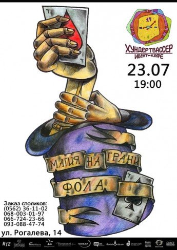 Приглашаем Вас посетить экстримальное магическое шоу «Магия на грани фола». Для Вас волшебство, магию и безумства будут творить самый отчаянный фокусник Андрей Фонта, а также иллюзионист и РокЗвезда Александр Мефисто.