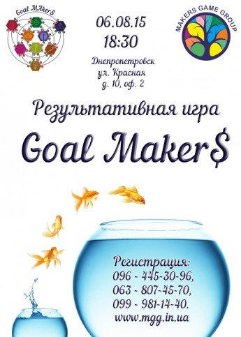 «Goal MAker$» дает дополнительную возможность познакомиться с новыми людьми, завязать личные и бизнес-знакомства, воспользоваться опытом и видением других участников игры относительно своей цели, получить качественную обратную связь от ко-ведущих (авторов «Goal MAker$») и других участников.