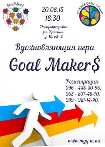 «Goal MAker$» дает дополнительную возможность познакомиться с новыми людьми, завязать личные и бизнес-знакомства, воспользоваться опытом и видением других участников игры относительно своей цели, получить качественную обратную связь от ко-ведущих (авторов «Goal MAker$») и других участников.