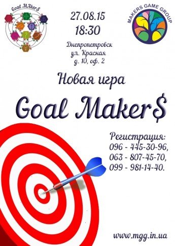 «Goal MAker$» дает дополнительную возможность познакомиться с новыми людьми, завязать личные и бизнес-знакомства, воспользоваться опытом и видением других участников игры относительно своей цели, получить качественную обратную связь от ко-ведущих (авторов «Goal MAker$») и других участников.