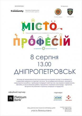 У парковій зоні розгортається імпровізоване містечко. При вході кожна дитина отримує паспорт, карту представлених професій та має можливість «влаштуватись на роботу». Після короткого майстер-класу від фахівців своїх галузей, а це представники надзвичайно значущих в сучасних умовах для країни професій. Таких як – рятувальник, пожежник, кінолог, вибухотехнік, інспектор ДАЇ, лікар, соціальний працівник, криміналіст. Презентацію професій забезпечили обласні управління МЧС та МВД кожного із зазначених міст. За допомогою активних представників бізнесу в кожному місту вдалося презентувати професії – будівельник, перукар, агроном, ветлікар, діджей, автослюсар, продавець, банкір, повар, актор, модель, кравчиня тощо.