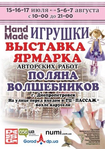 Уважаемые жители и гости города приглашаем Вас посетить выставку- ярмарку авторских работ "Поляна волшебников", где будут представлены изделия лучших мастеров, умельцев современного и народного творчества "Hand Made" из разных регионов Украины.