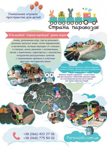 Игротека «Страна паровозов» – это уникальная для Украины игровая площадка с игрушечной железной дорогой для малышей дошкольного возраста.