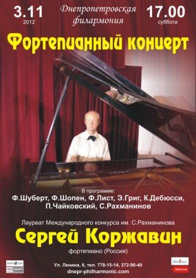 В программе: Ф.Шуберт, Ф.Шопен, Ф.Лист, Э.Григ, К.Дебюсси, П.Чайковский, С.Рахманинов.