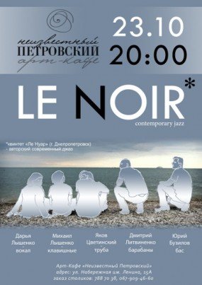Le Noir [Ле Нуар] - это днепропетровский джазовый квинтет. Группа исполняет авторскую музыку, в которой органично сочетаются современные академические и джазовые традиции.