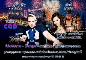 DJ MAX MORE, резидент SOHO ROOMS, VINOGRAD, ICON, TETRI, OBLAKA, MARADONA, KARAMEL, UP UND DOWN, ведущий программы Clubbox на телеканале Music box.