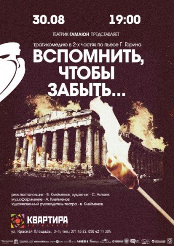 Приглашаем Вас на спектакль «Вспомнить, чтобы забыть» (по произведению Григория Горина «Забыть Герострата!«).