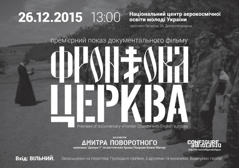 Запрошуємо на прем'єрний показ документального фільму Егонса Упітіса (Egons Upītis) «Фронтова церква» (Frontier Church) за участю капелана полку «Дніпро – 1», настоятеля Храму Покрова Божої Матері Дмитра Поворотного.