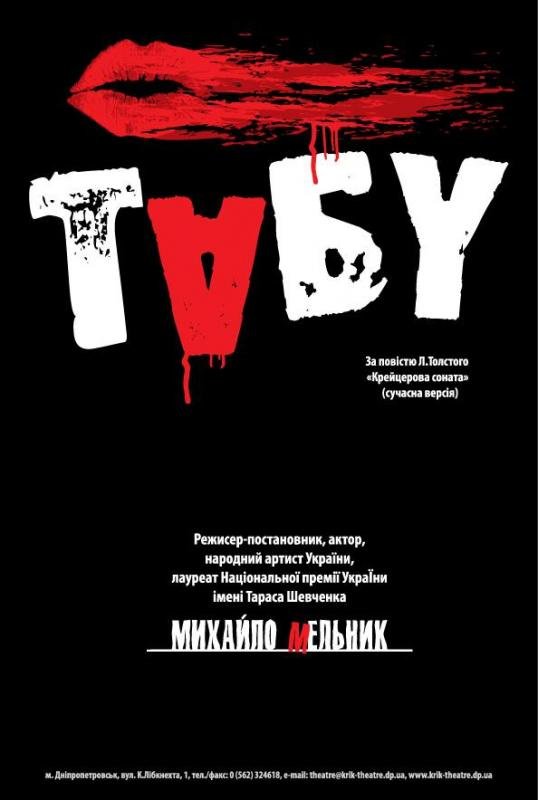 Коли подружнє життя починається з брехні, воно не може закінчитись добре. Як тільки порушується гармонія між парою – починається трагедія. І добре, якщо вони вчасно розбіжаться. Це теж кепсько… Але це ще півбіди, біда починається тоді, коли є діти. Біда тому, що ненависть одне до одного в сім’ї зразу б’є по дітях. Якщо вже дві долі руйнуються – то це тільки дві долі, а коли руйнується ще й дитяча доля – то вже руйнується Всесвіт. Отже п’єса про стосунки, про сьогоднішній день, про те, як важливо одружуватися чи виходити заміж тільки з любові. Тому я б сказав, що це Табу на нелюбов. М. Мельник