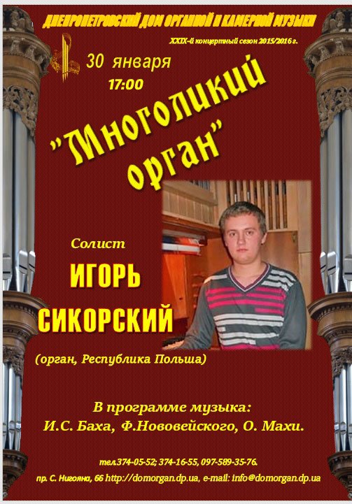 В программе: И.С.Баха, И.Брамс, С.Франк, П.Дюмаж.