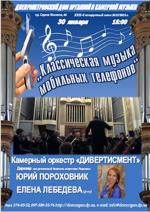 В программе музыка: И.С. Баха, В.А. Моцарт, А. Вивальди, П. Мориа.