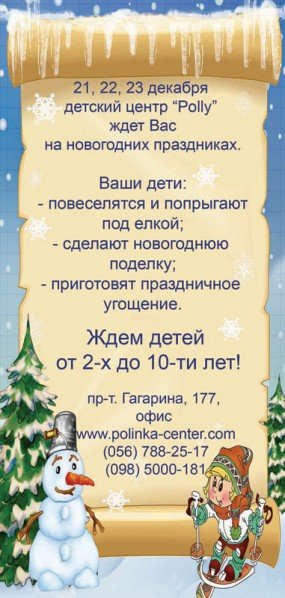 Бесплатный новогодний праздник для детей от 2 до 10 лет в детском центре "Polly" 21,22,23 декабря (р-н "Дафи", Подстанция).