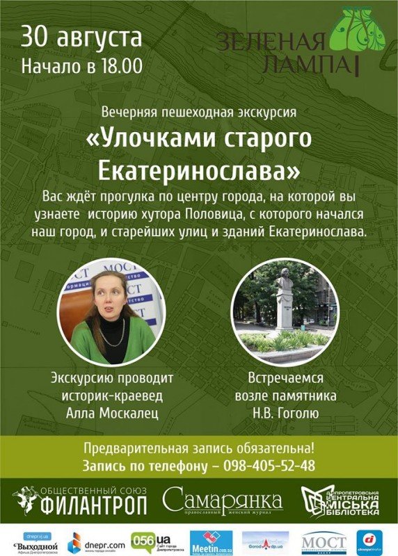 30 августа состоится вечерняя пешеходная экскурсия « Улочками старого Екатеринослава»