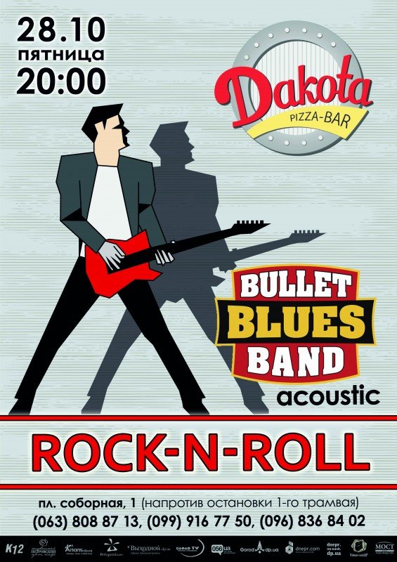 Dakota Pizza-bar приглашает любителей рок-н-ролла на выступление группы Bullet Blues Band. Лучшие песни эпохи “Чикагского блюза” прозвучат на сцене Dakota.