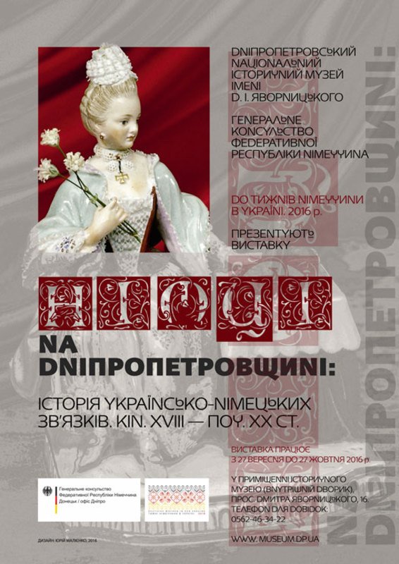 Логічно, що й в аспекті матеріальної культури німецька традиція мала неабиякий вплив на побут мешканців Катеринославщини, як і Європи загалом. У фондах Дніпропетровського національного історичного музею ім. Д. Яворницького зберігається до 600 од. предметів німецького походження. Всі вони в більшій чи меншій мірі віддзеркалюють російсько-німецько-українські політичні та економічні відносини і етнокультурні зв’язки трьох народів протягом майже двох століть. Значне місце в збірці предметів німецького походження посідають нумізматичні матеріали. Це мідні, цинкові, залізні і алюмінієві монети королівств, герцогств і міст Німеччини періоду 1889 – 1916 рр. Цікавими і рідкісними є гривні, виготовлені на замовлення Української держави у 1918 р. У складі зібрання предмети холодної та вогнепальної німецької зброї; мисливські кинджали, рушниці, багнети зразка 1898 – 1905 рр., пістолети, кортики, шаблі, деякі зразки зброї фірми «Zоlіngen». Музей зберігає до 40 одиниць німецької порцеляни та посуди зі скла XVIII - XX ст. Вази, тарілки, кухлі найвідоміших німецьких марок, зокрема Мейсен – законодавця моди у світі порцеляни. У зібранні наявні годинники кишенькові, настінні, настільні і камінні періоду XIX – XX ст., а також фотоапарати та телефони XX ст.