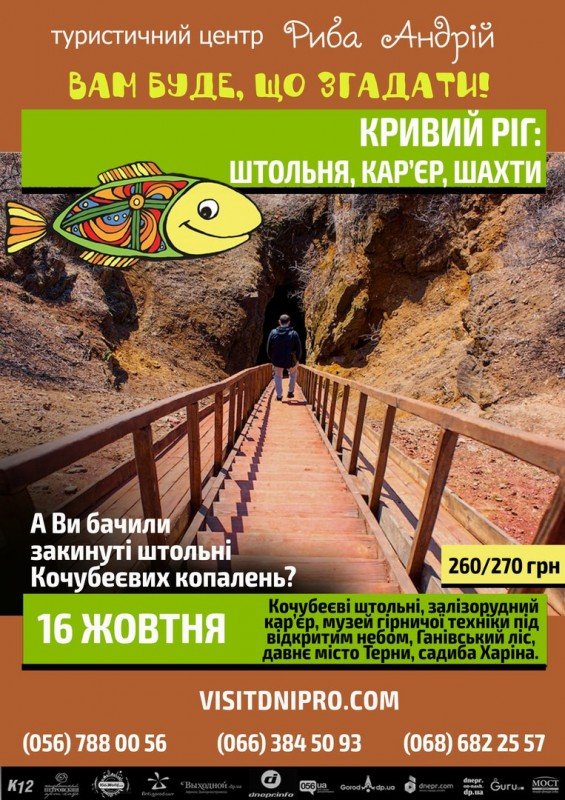 Також на вас чекає екскурсія Ганнівським кар'єром, прогулянка осіннім парком та старовинним маєтком Харіна, відвідування музею гірничої техніки під відкритим небом!
