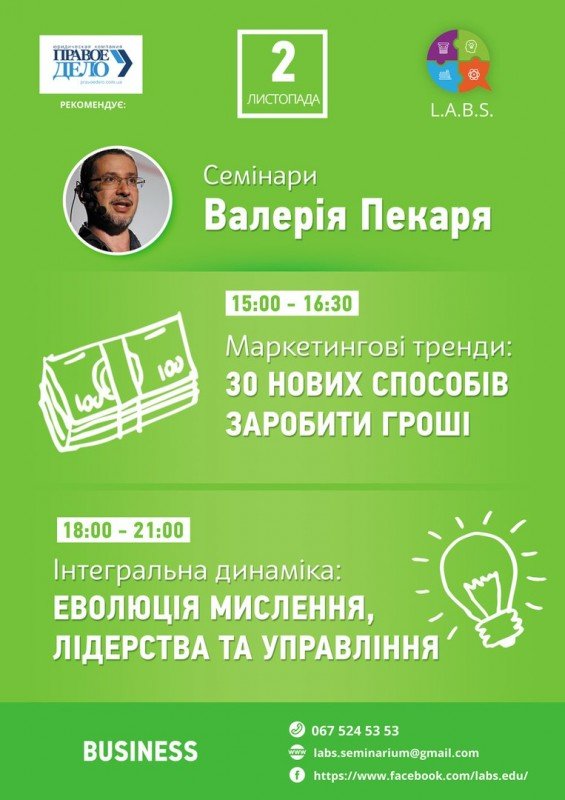 ВНИМАНИЕ! При участии в обоих мероприятиях Валерия Пекаря (вместе с "Интегральная динамика: Эволюция мышления, лидерства и управления») стоимость двух билетов 500 грн