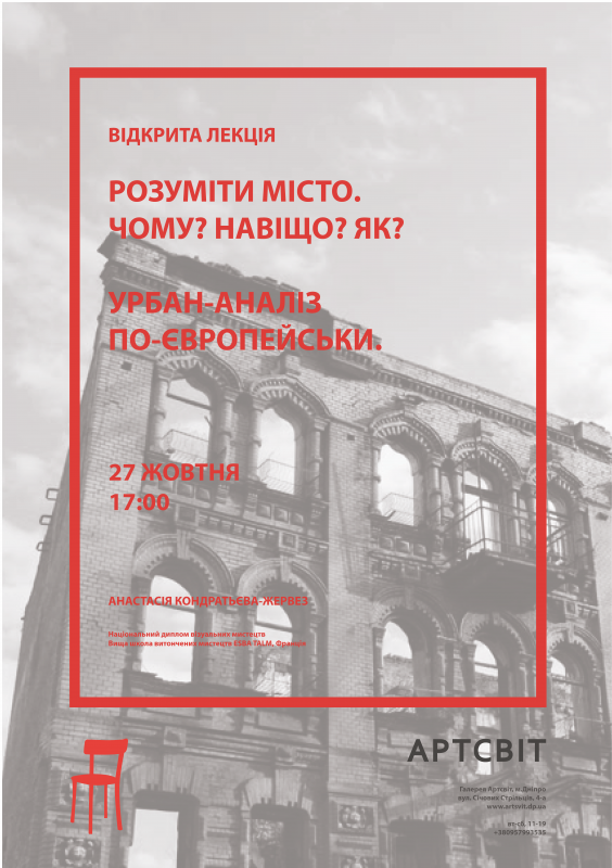 В рамках інтенсиву, 27 жовтня запрошуємо на публічну лекцію "Розуміти місто. Чому? Навіщо? Як?", де будуть розглядатись європейські практики урбаністичного аналізу та можливості їх використання на пострадянських просторах.