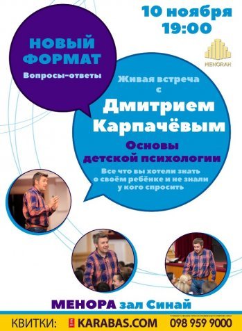 Впервые в Днепре новый формат встречи с самым востребованным психологом страны и ведущим канала СТБ Дмитрием Карпачевым.