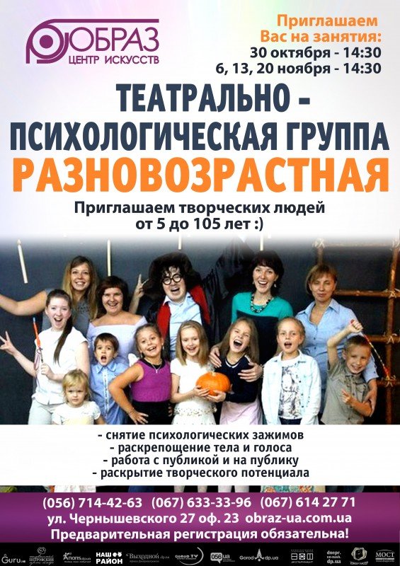 "Центр искусств "Образ" приглашает вас в разновозрастную театрально-психологическую группу выходного дня!