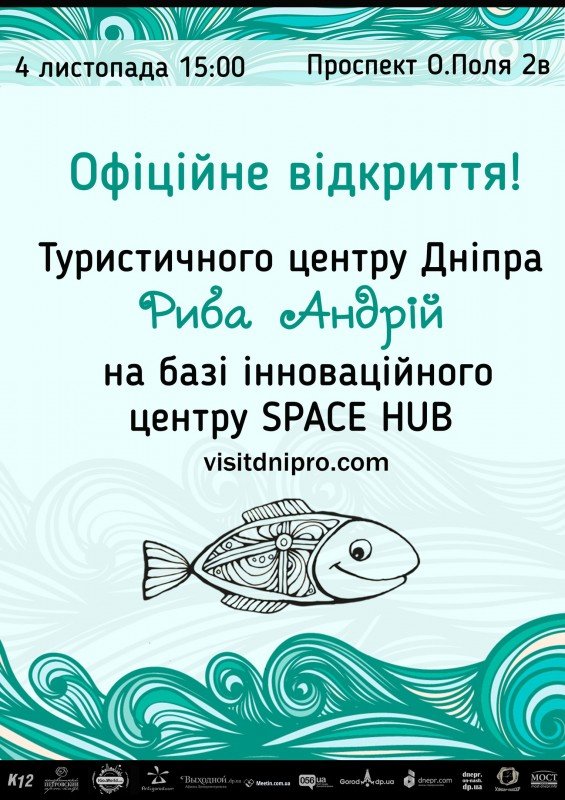 Запрошуємо вас на офіційне відкриття туристичного центру Дніпра «Риба Андрій» на базі інноваційного центру SPACE HUB!