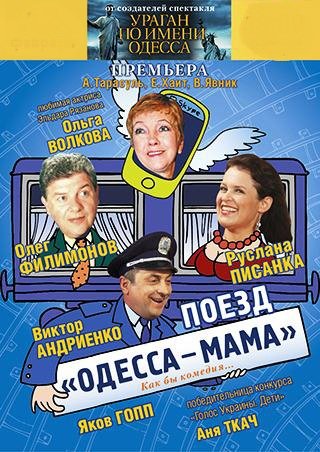 Сегодня юмористический жанр несколько дискредитирован, поэтому зрителю всегда приятно, когда ему напоминают, что такое хорошая комедия. Спектакль «Поезд «Одесса-мама» — как раз такая постановка, в которой театральные эксперименты авторов органично сливаются с точной работой режиссера Игоря Славинского и блестящей актерской игрой Русланы Писанки, Олега Филимонова, Виктора Андриенко, Якова Гоппа.