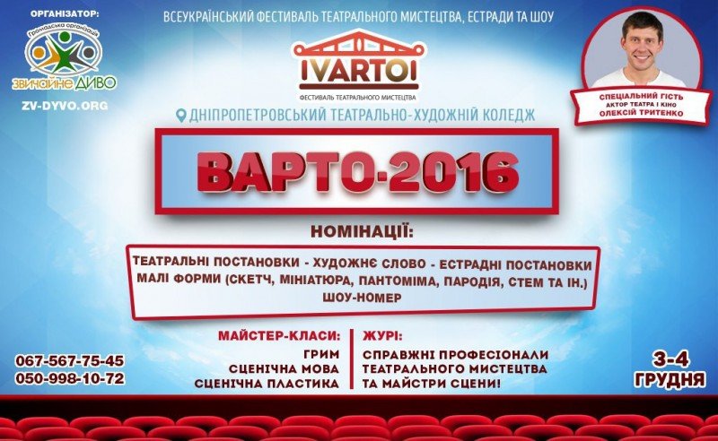 3-4 грудня 2016 року Дніпропетровский театрально-художній коледж і громадська організація «Звичайне диво» збере дітей та молодь від 5 до 30 років більш ніж 15 міст України на