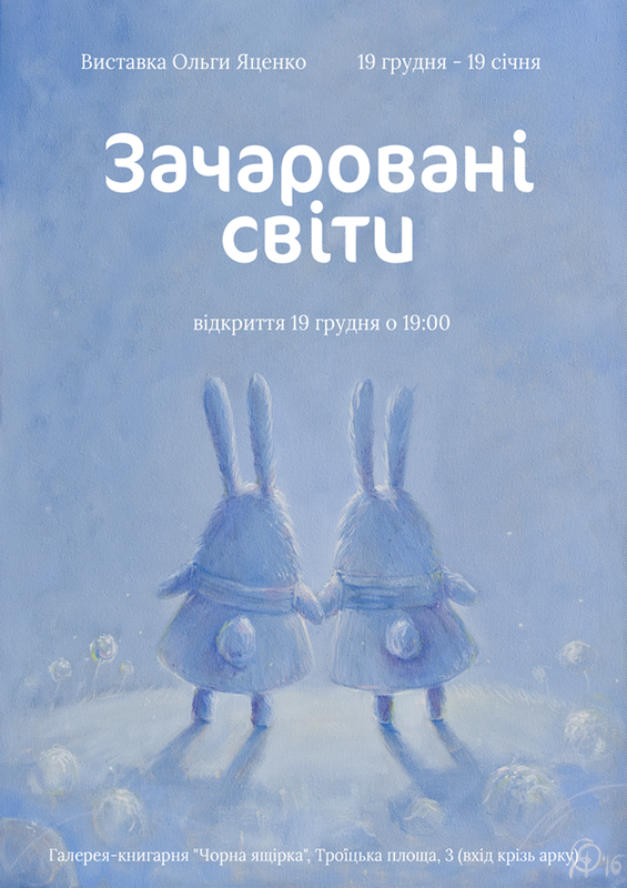 19 грудня о 19:00 в галереї-книгарні «Чорна ящірка» відкриється виставка Ольги Яценко «Зачаровані світи». Замріяні та казкові, картини художниці якнайкраще пасують до першого з зимових свят – дня Святого Миколая, коли під дитячими подушками містичним чином виникають подарунки, а в повітрі вперше з'являється морозяний аромат дива.