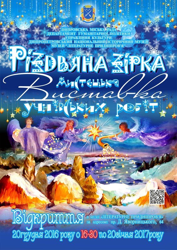 Відкриття виставки «Різдвяна зірка» відбудеться за адресою: пр.Дмитра Яворницького, 64 в музеї «Літературне Придніпров'я».