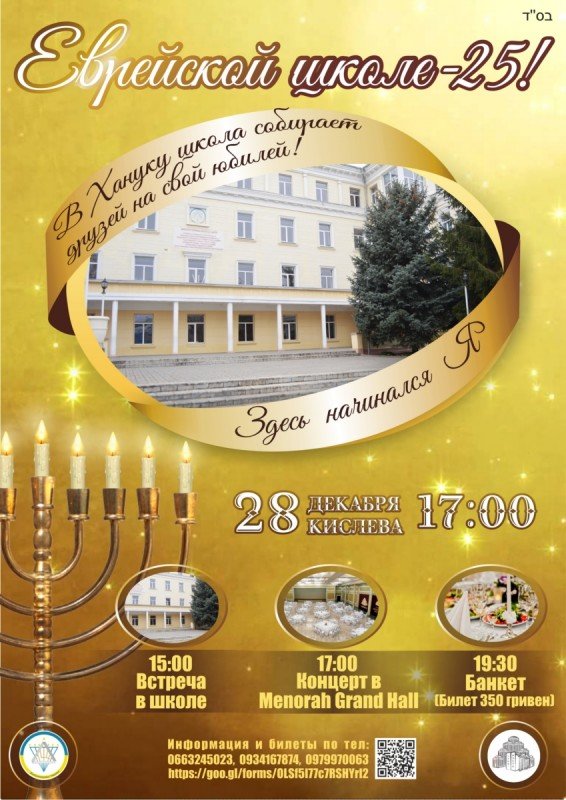 В центре «Менора» состоится грандиозное мероприятие посвященное 25-тилетию еврейской школы «Ор Авнер Хабад Любавич» им. Леви-Ицхака Шнеерсона.