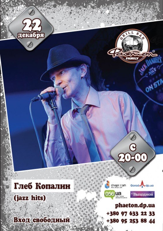 В четверг, приглашаем Вас расслабиться и насладиться ярким выступлением Гостя сцены «Фаэтона». Традиционно, Вас ждет множество вкусных блюд, фирменное не фильтрованное пиво, отличное настроение и музыкальные сюрпризы от элегантного Глеба Копалина. Приходите и наслаждайтесь!