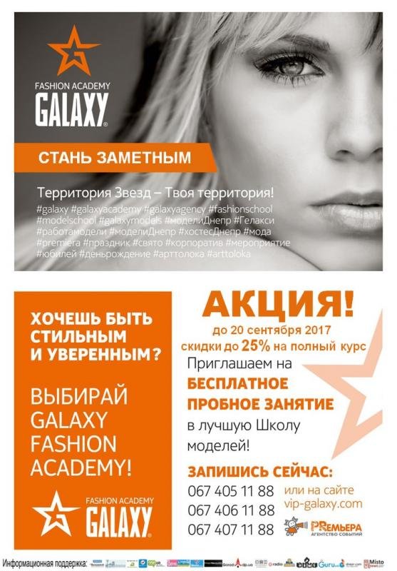 Лучшая школа моделей -Galaxy Fashion Academy-приглашает на бесплатные пробные занятия 16.09,17.09 и 23.09.