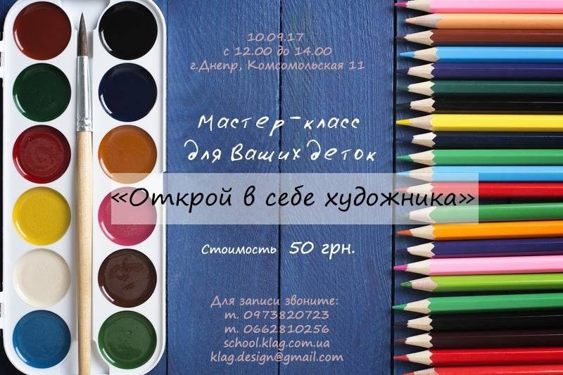 Art-School "KLAG" приглашает ваших деток от 7 лет на мастер-класс по живописи "Открой в себе художника".